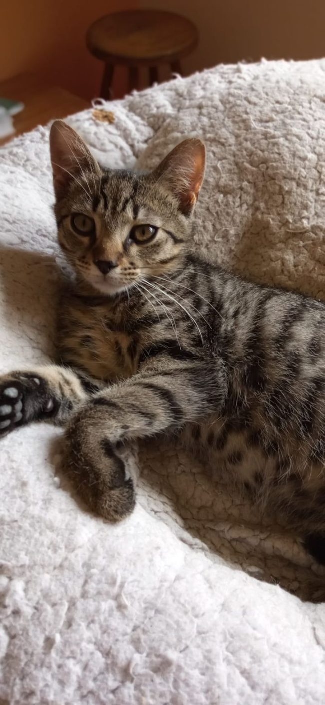 BÖBE neme: ivartalanított nöstény születés:2023.05.01. színe: ezüst cirmos Böbe Boszival együtt született. Egy kaposvári építkezésen találtak rájuk. Imádja a simogatást, nagyon kedves és hízelgős kiscica.