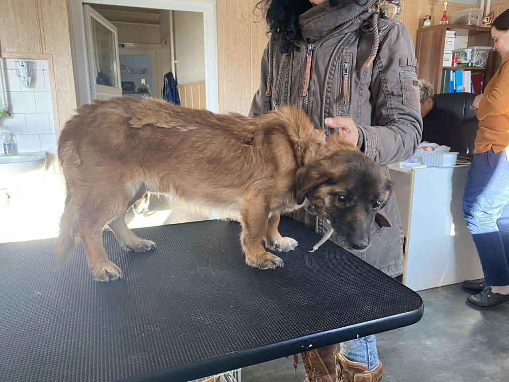 Adrianra egy faluban találtak rá az utcán – lánccal a nyakában. Volt ugyan mikrochipje, de sajnos nem volt regisztrálva, és senki sem kereste. Így került a mi állomásunkra. 9 kg-os, 35 cm-es kiskutya. Adrian egy barátságos kutya, családbarát, aki még mindig kissé zárkózott az emberekkel szemben. Múltja ellenére megőrizte szelíd természetét. Jól kijön más kutyákkal, szerény, és értékeli a figyelmet.